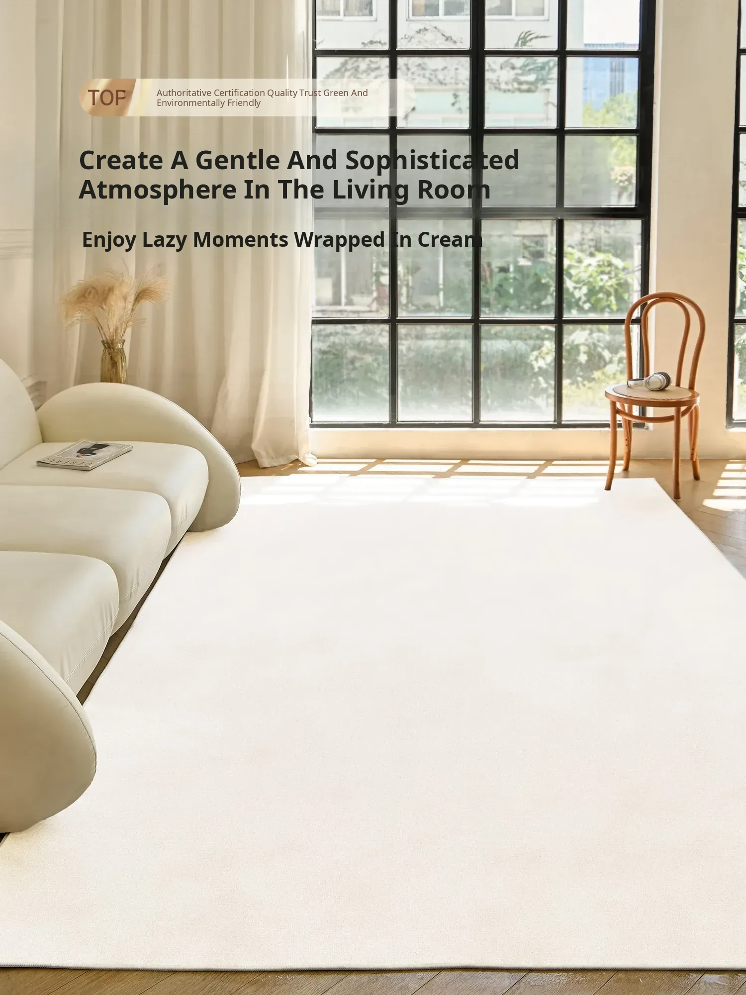 Cozy Creamy Sofa Carpet - New Soft and Skin-Friendly Living Room Rug, Easy to Clean, Waterproof and Stain-Resistant, Perfect for Natural Decor