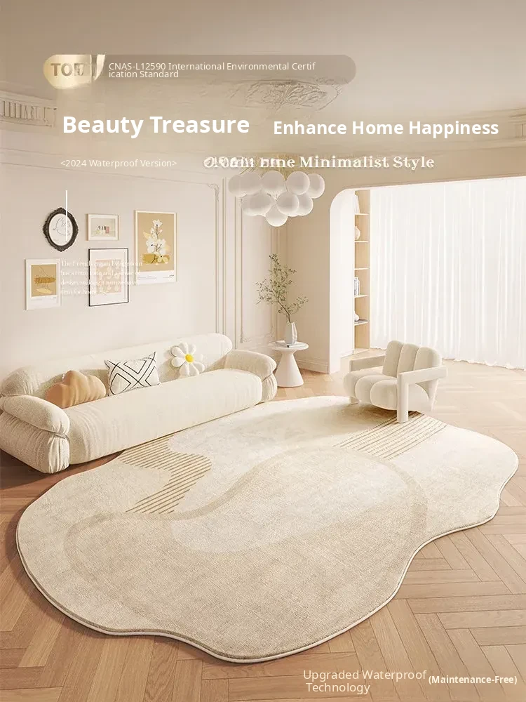 2025 New Cream-Colored Living Room Carpet - Irregular, Waterproof, No-Wash, Easy Care Area Rug for Coffee Tables - Stylish and Low-Maintenance Home Decor