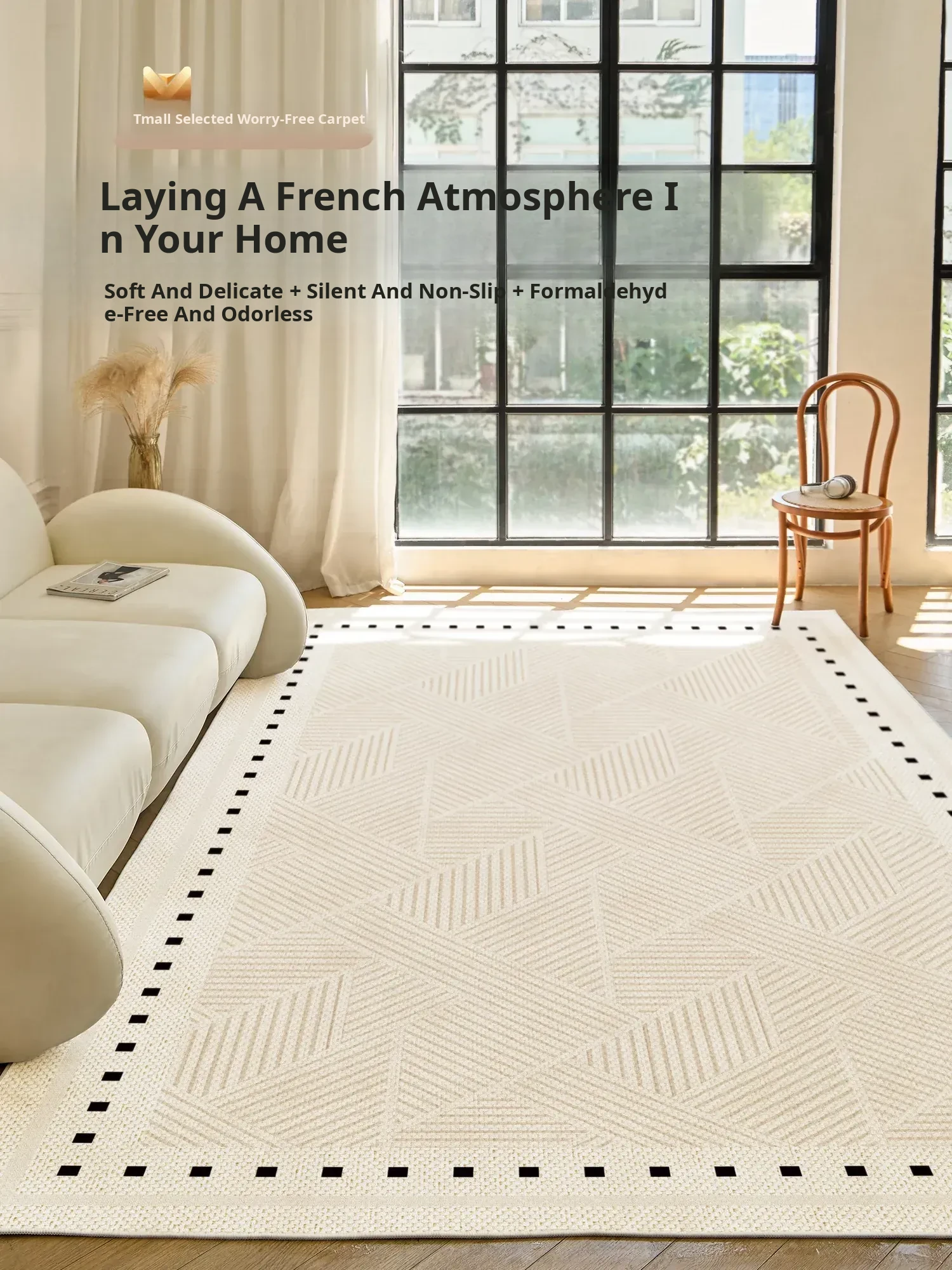 French Cream Style Waterproof and Stain-Resistant Carpet for Living Room - 2025 New Slip-Resistant, Easy-Clean Luxury Floor Mat with Elegant Touch