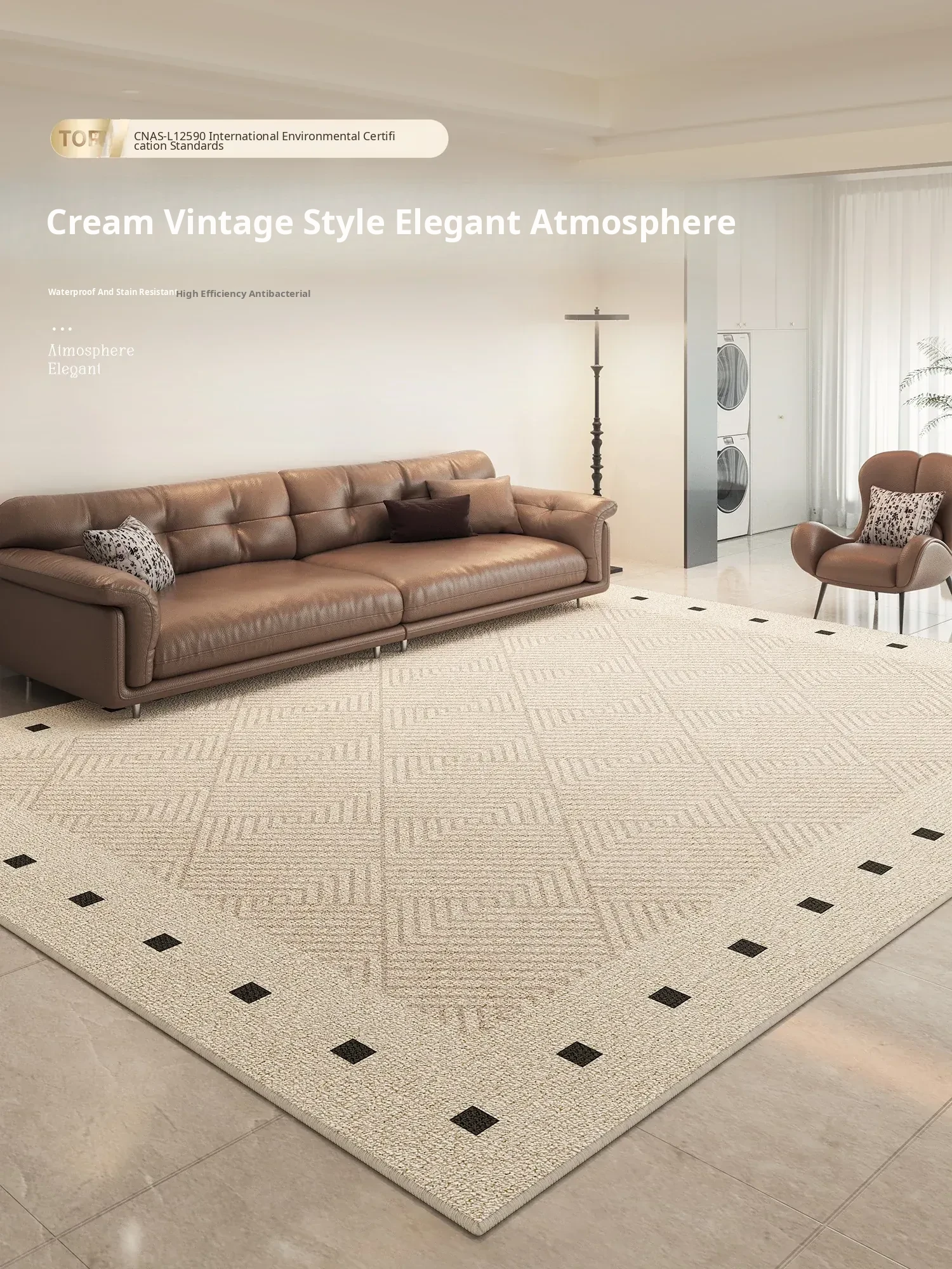2025 New Cream-Style Living Room Carpet - Premium Waterproof Area Rug for Home, Perfect for Vintage Sofas and Coffee Tables, Cozy Bedroom Bedside Mat