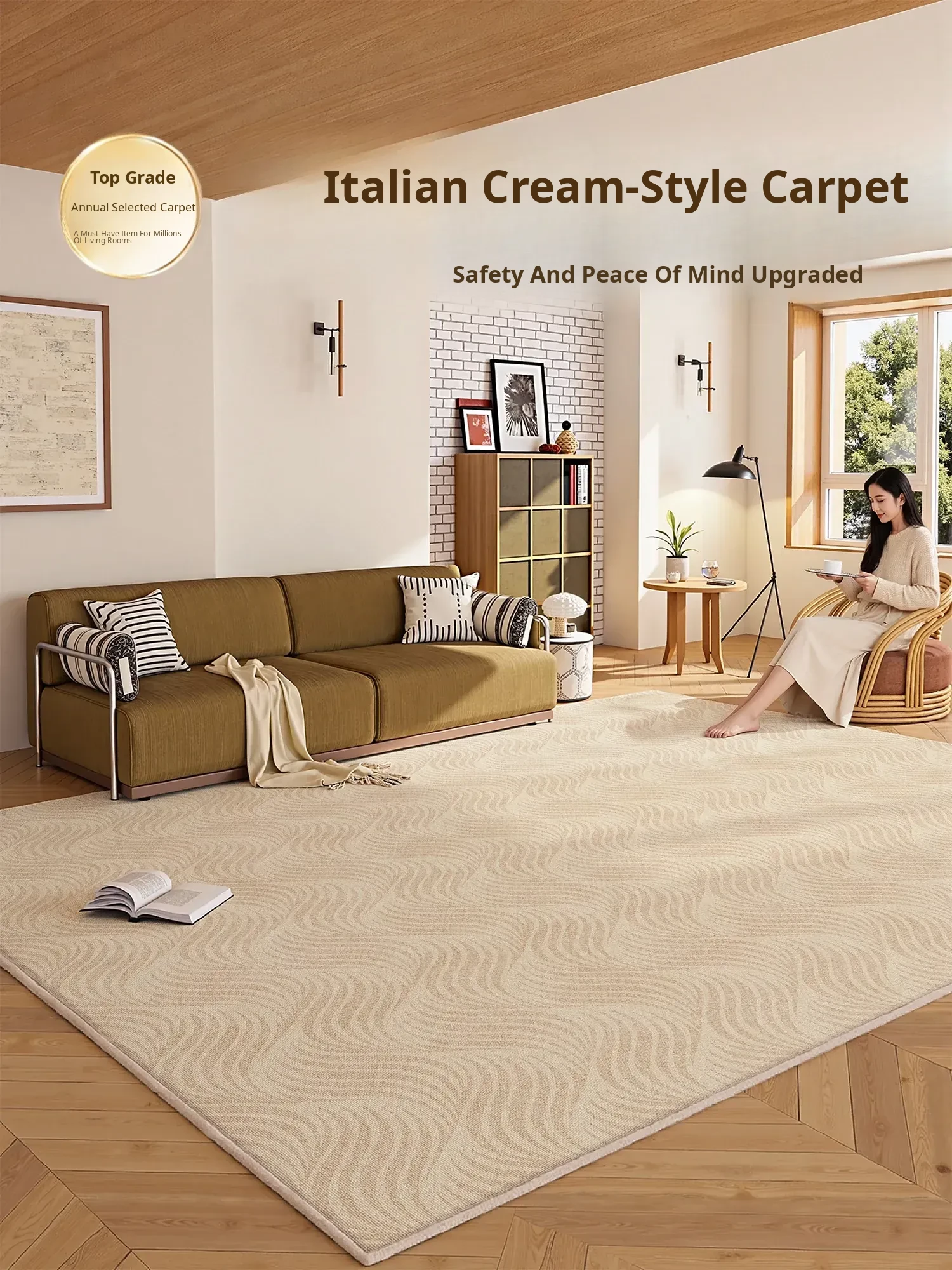 2025 New Luxury Easy-Care Cream Style Living Room Carpet – No Wash, Perfect for Sofa & Coffee Table in Bedroom or Living Room
