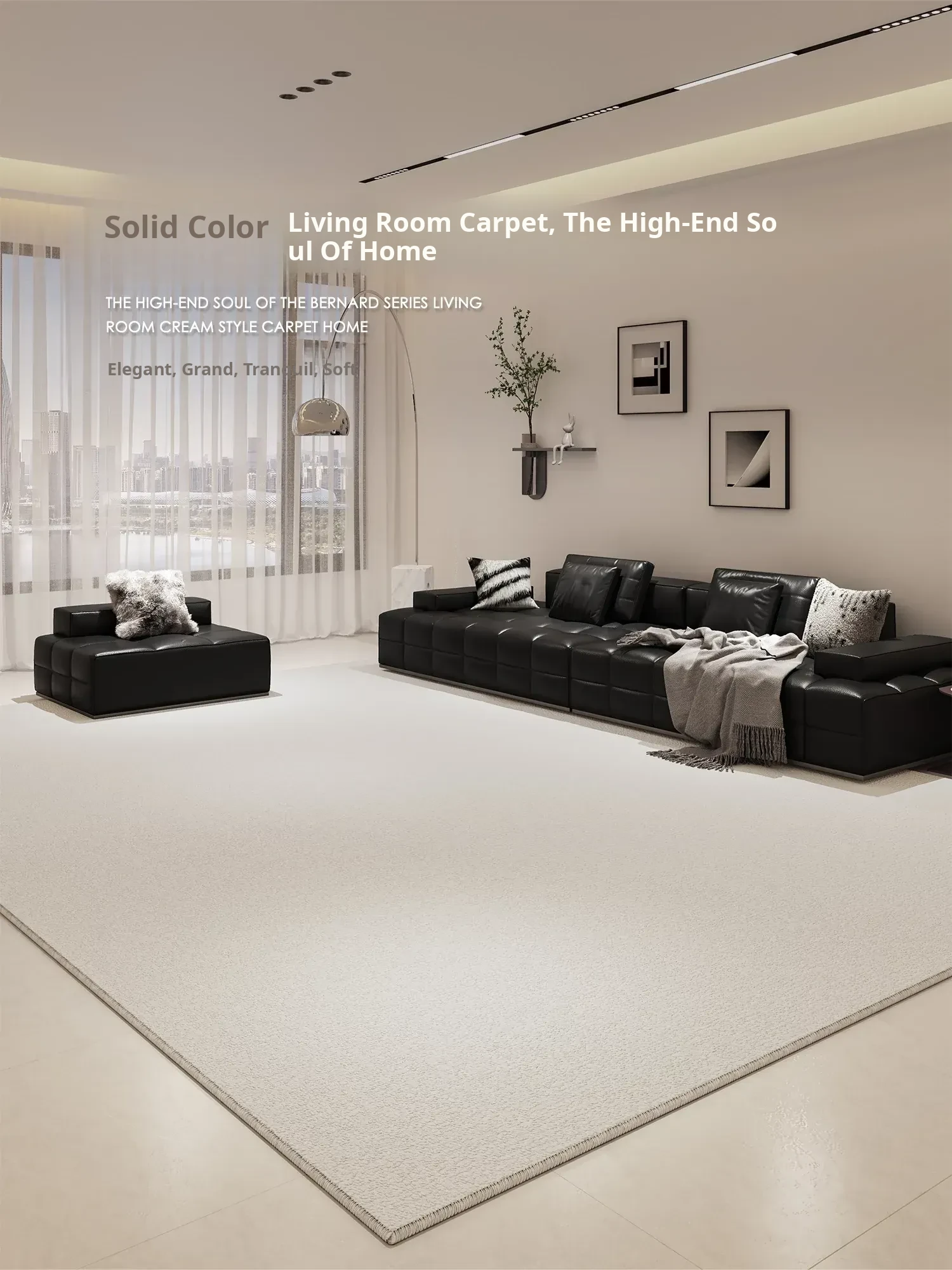 High-End Cream Minimalist Living Room Carpet 2025 New Arrival - Durable Light Luxury Bedroom and Coffee Table Mat, Perfect for Elegant Home Decor