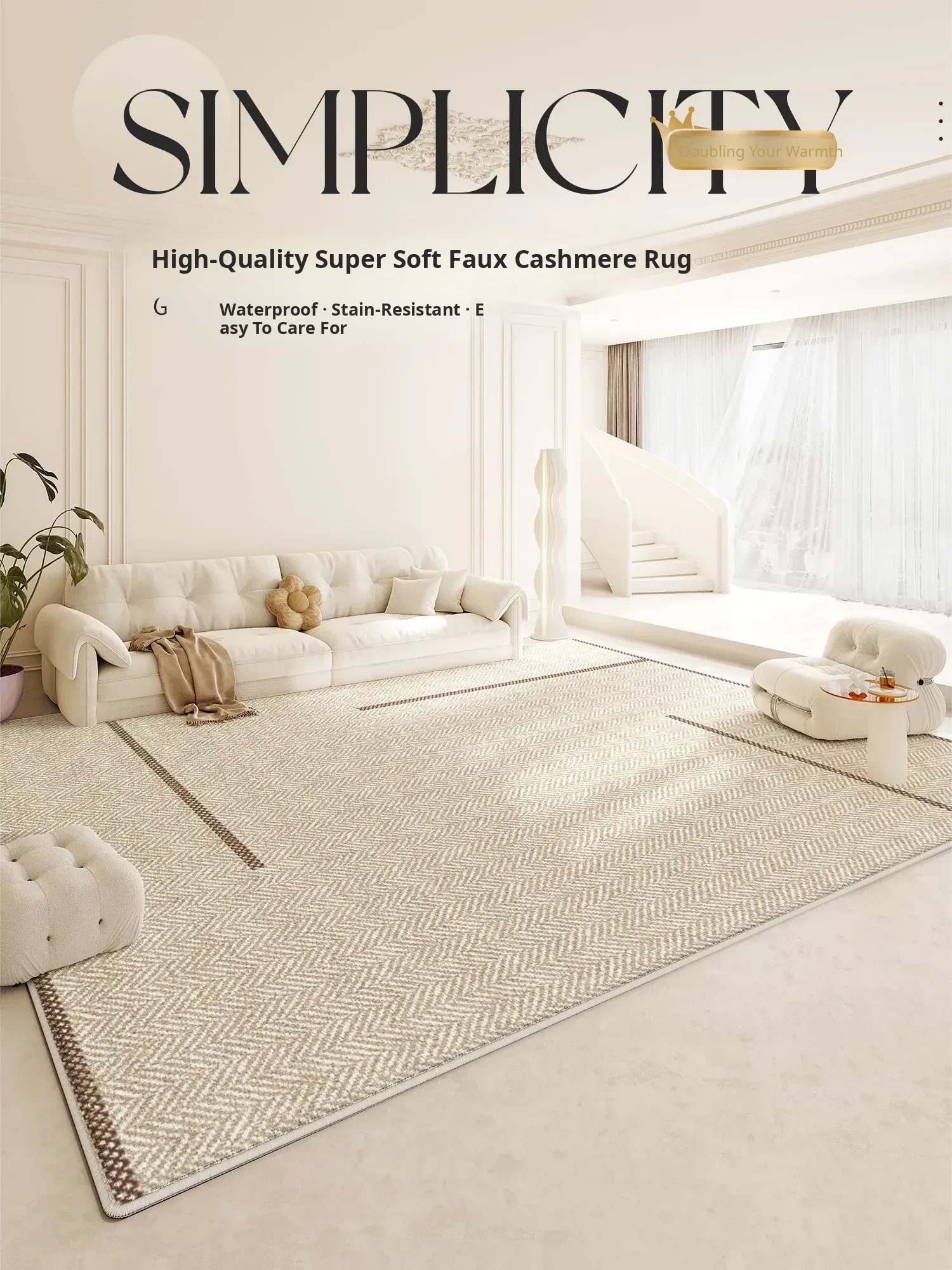 Modern Minimalist Living Room Carpet - New Faux Cashmere, Waterproof, Easy to Clean, Luxurious Feel for Bedroom, Coffee Table, and Sofa
