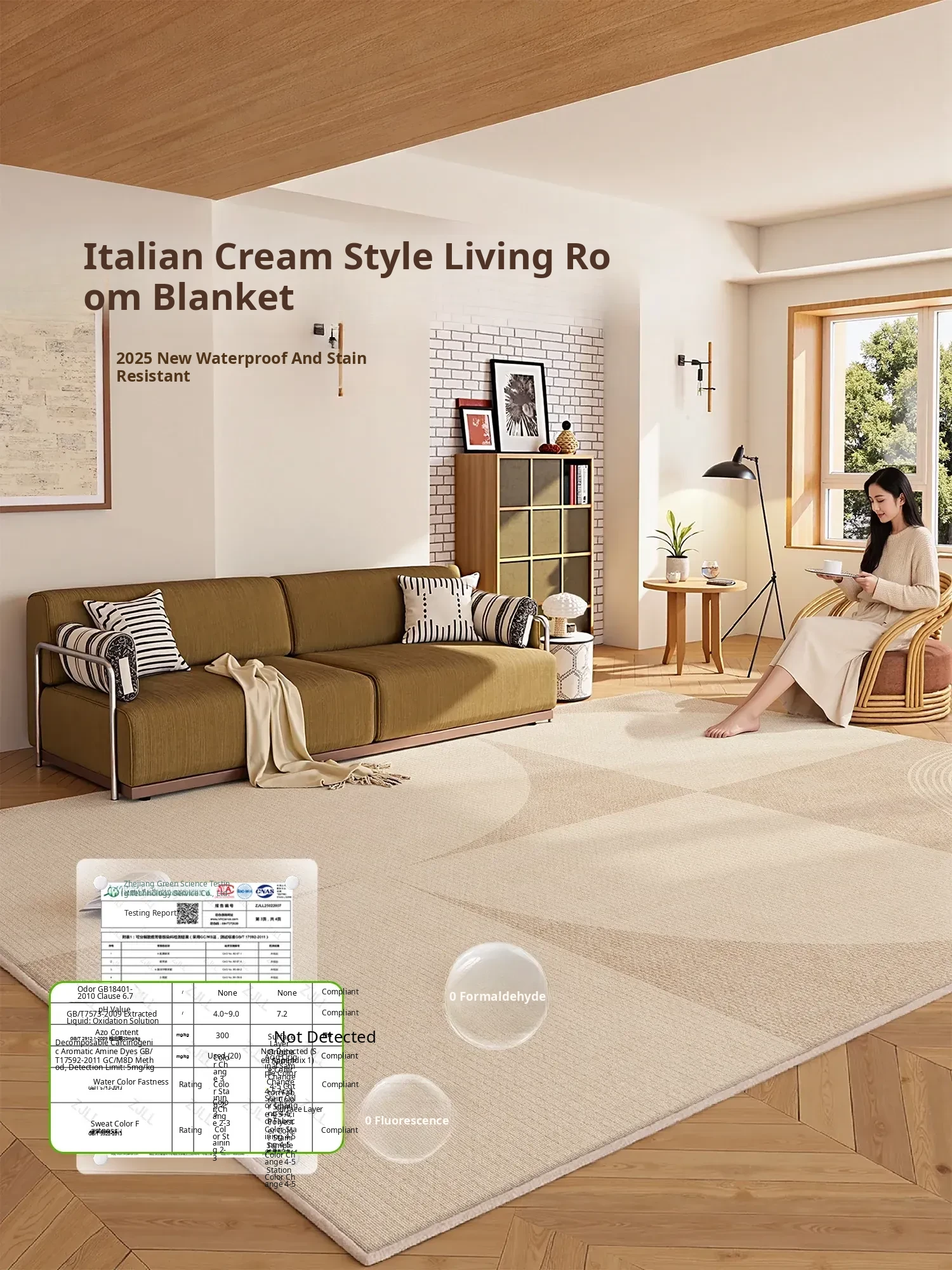 2025 New Creamy Style Living Room Carpet - Luxurious Silica Fiber Area Rug, Waterproof and Easy-Clean, Perfect for Sofa and Coffee Table