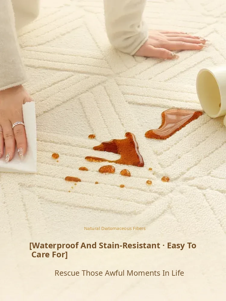 Creamy Style 2025 New Living Room Carpet - High-End, Wash-Free Diatom Mud Coffee Table Mat, Waterproof and Stain-Resistant Bedroom Rug