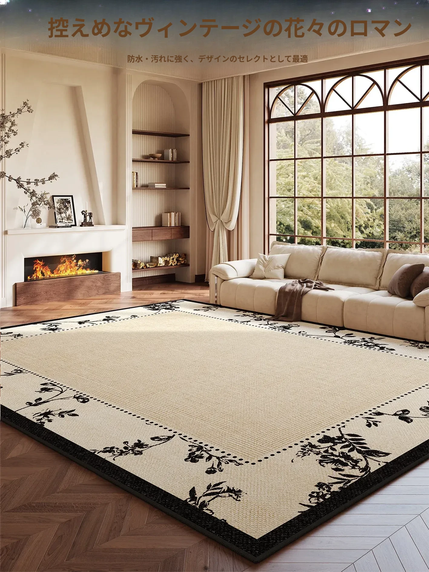 2025年新作!フレンチクリーム風の防水・防汚ソファカバー付きリビングルーム用ラグマット。シンプルで洗練されたデザイン、寝室にもぴったりな高級感。理想の空間を演出する一品です!