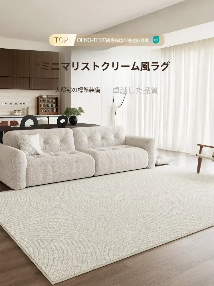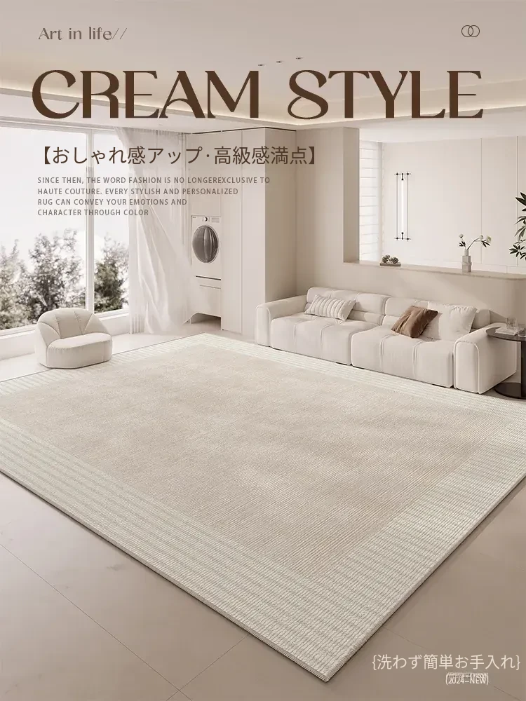 クリーム風のリビングカーペット2025新作、軽やかなラグで高級感を演出!冬にもぴったりなソファマット、防水・防汚機能付きでお手入れ簡単。おしゃれな空間を演出しませんか?