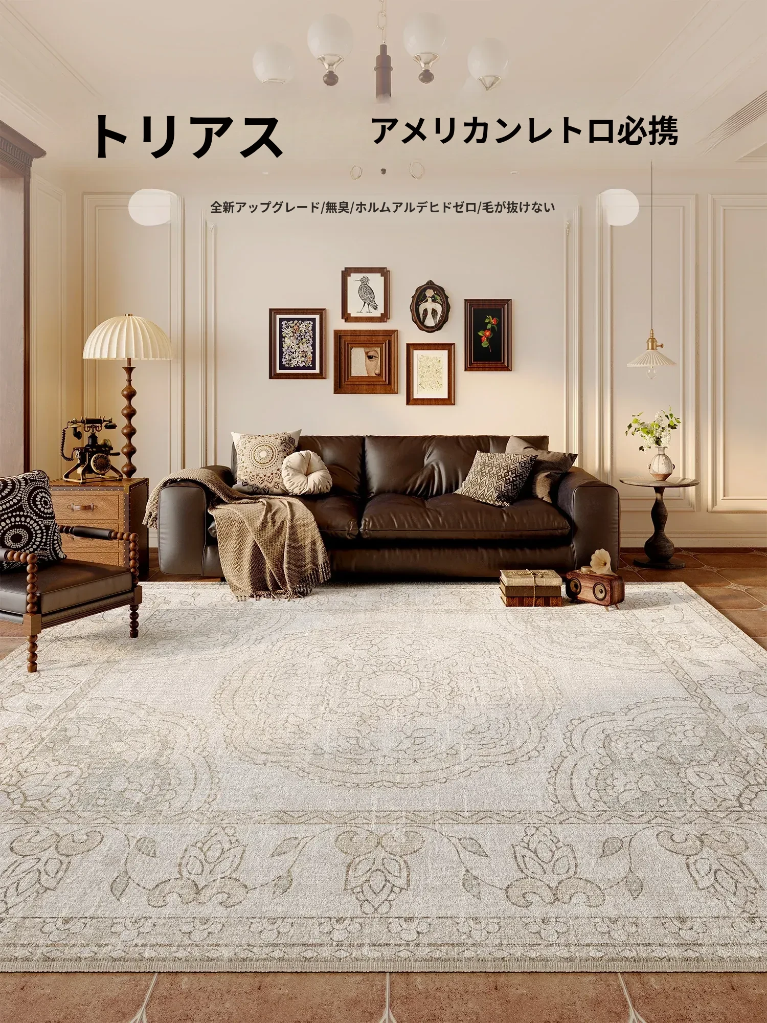 2026年新作!おしゃれな中古風リビングラグ - テーブルマットにも最適!手洗い不要&防水・防汚加工でお手入れ簡単。耐久性抜群で、どんなインテリアにもマッチする理想的なリビングカーペット!
