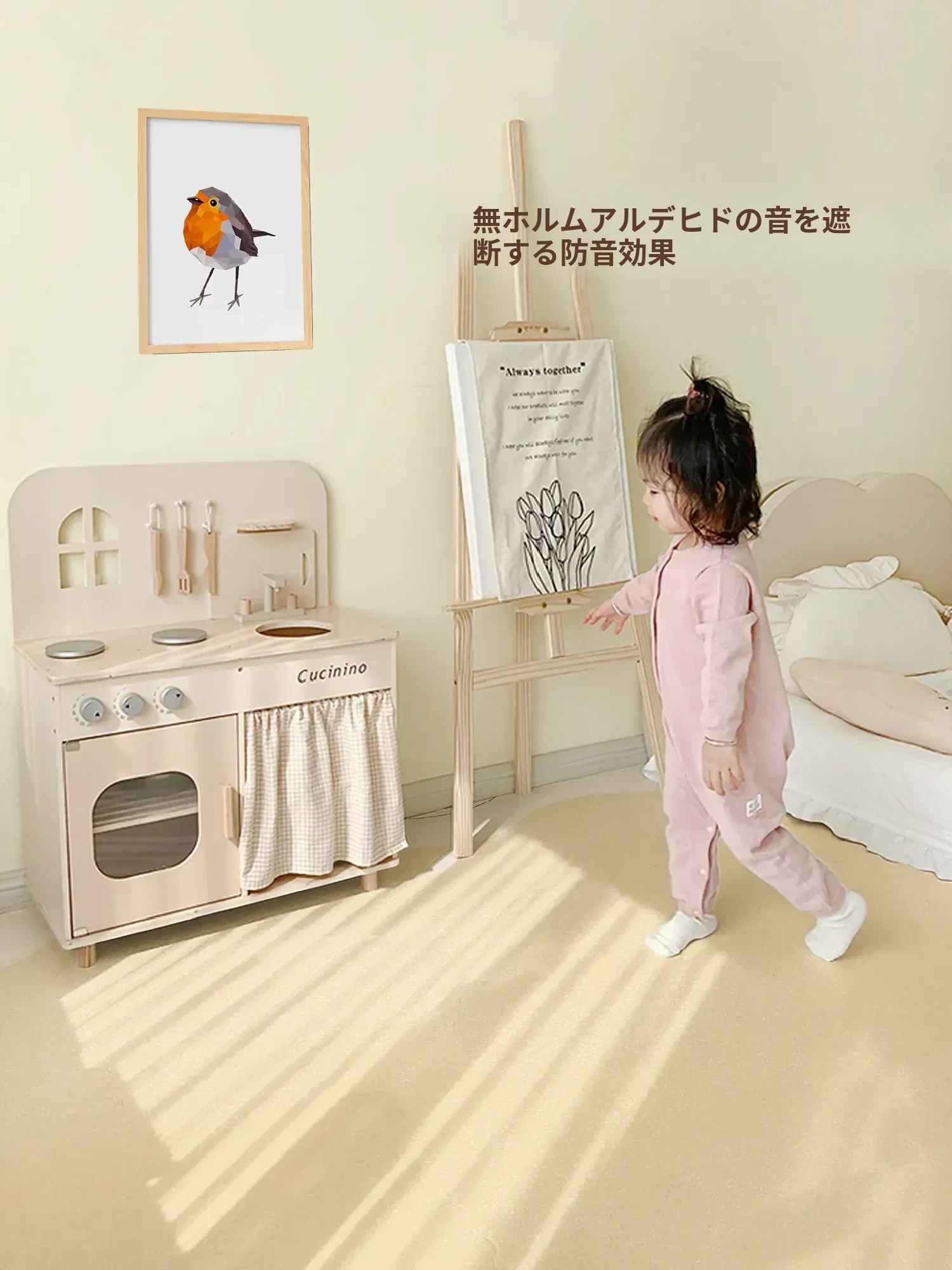クリーミーな風合いのラグマット - リビングにぴったり!洗濯不要でお手入れ簡単、防水・防汚機能付き。寝室やベッドサイドにも最適、厚手で心地よい音吸収効果!温かみのあるインテリアを演出します。