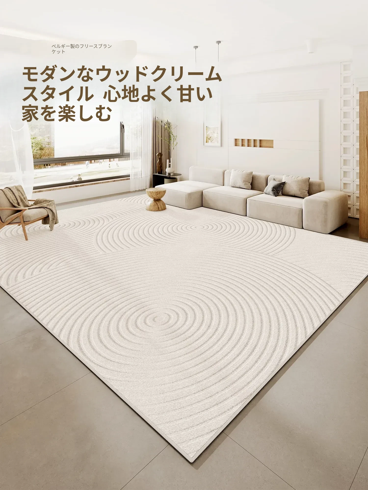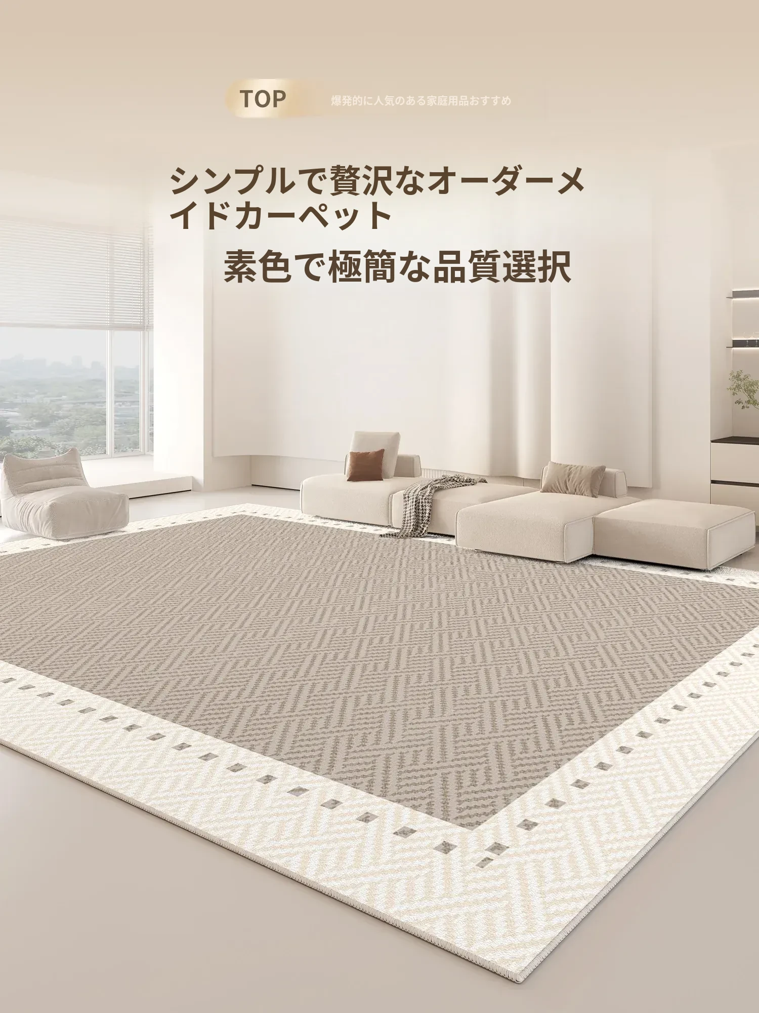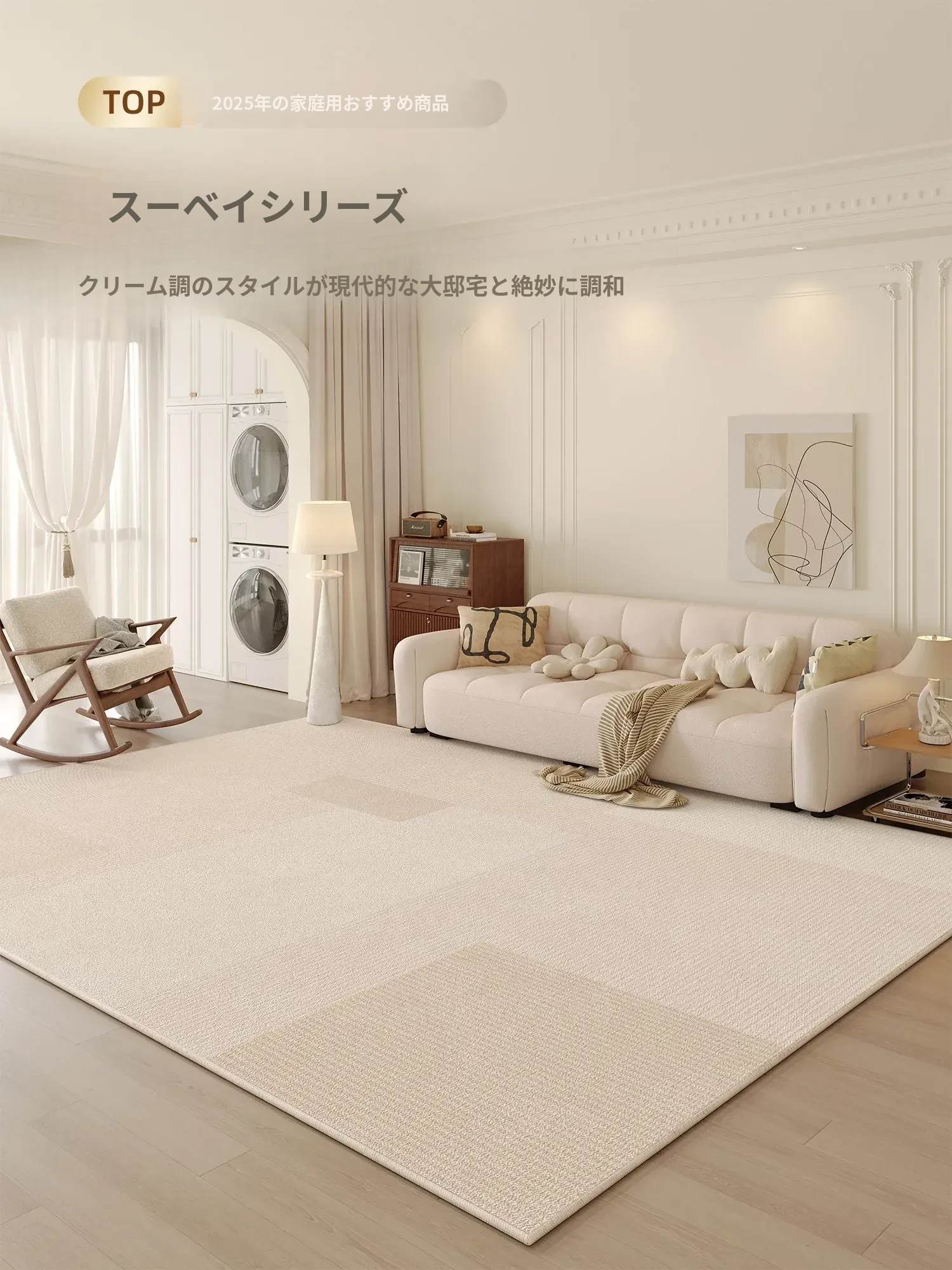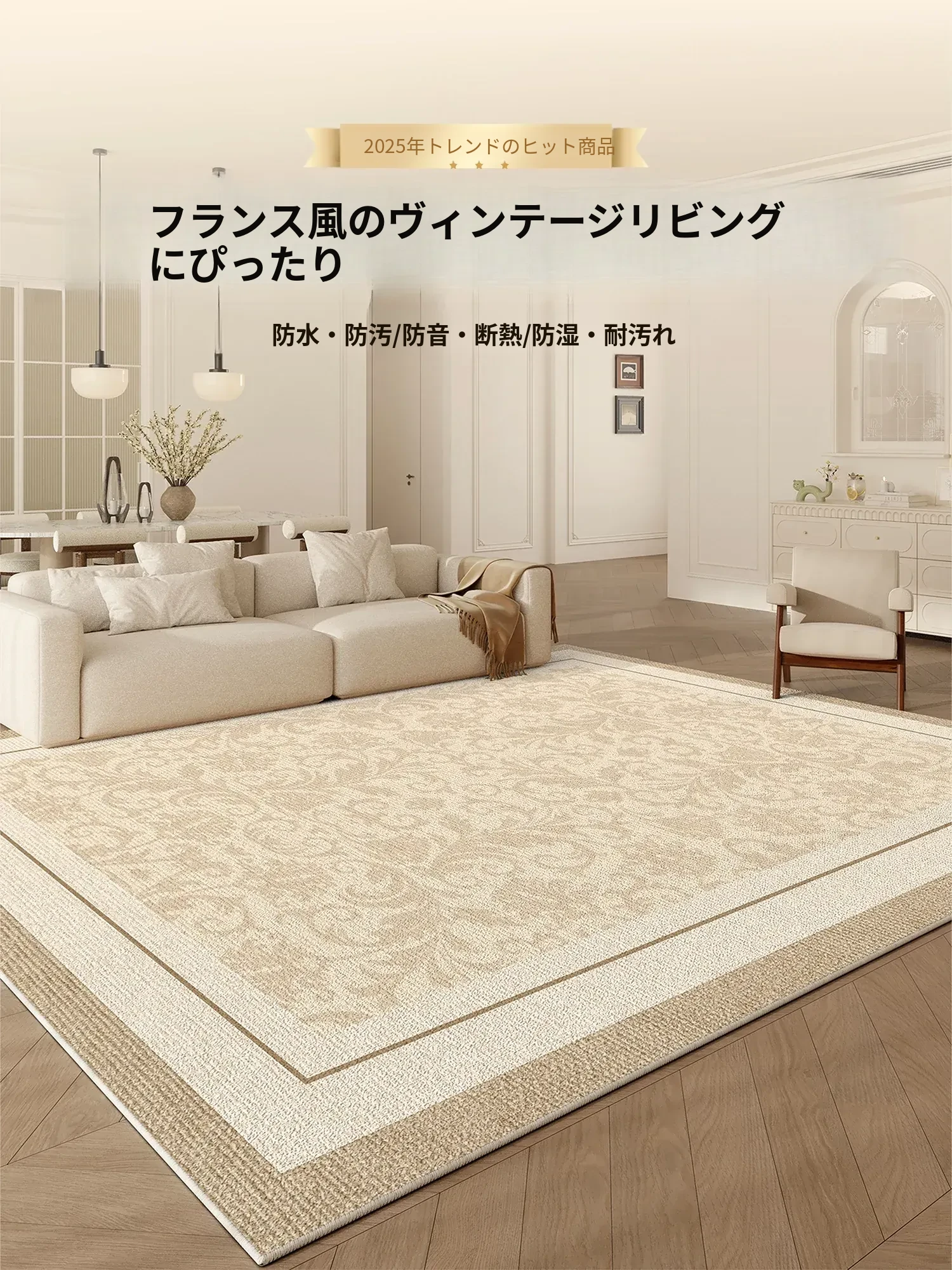 2025年新作!高級感あふれるクリームソファにぴったりのリビング用カーペット。厚手でお手入れ簡単、汚れに強く防水効果も抜群。心地よい空間を演出します!