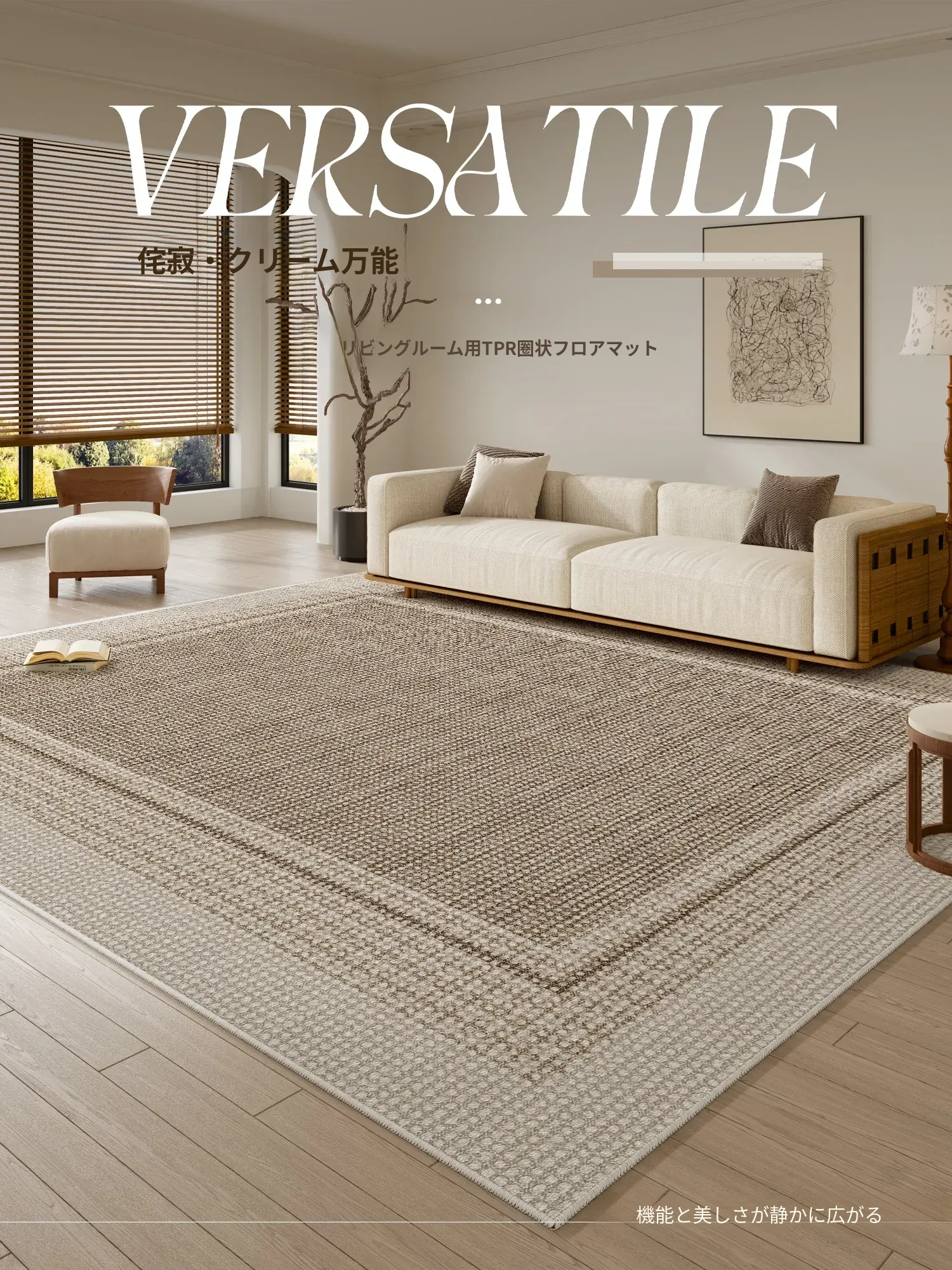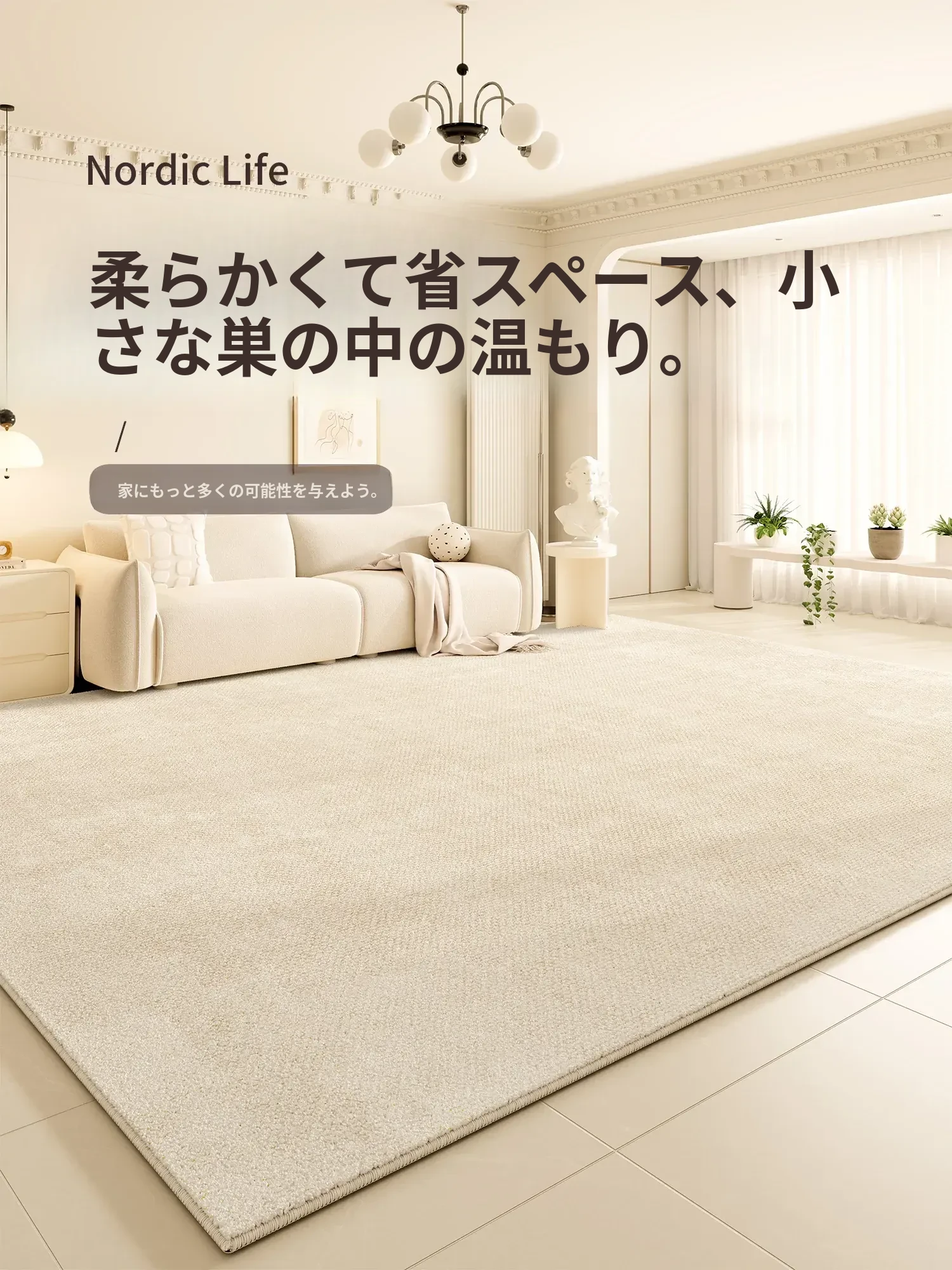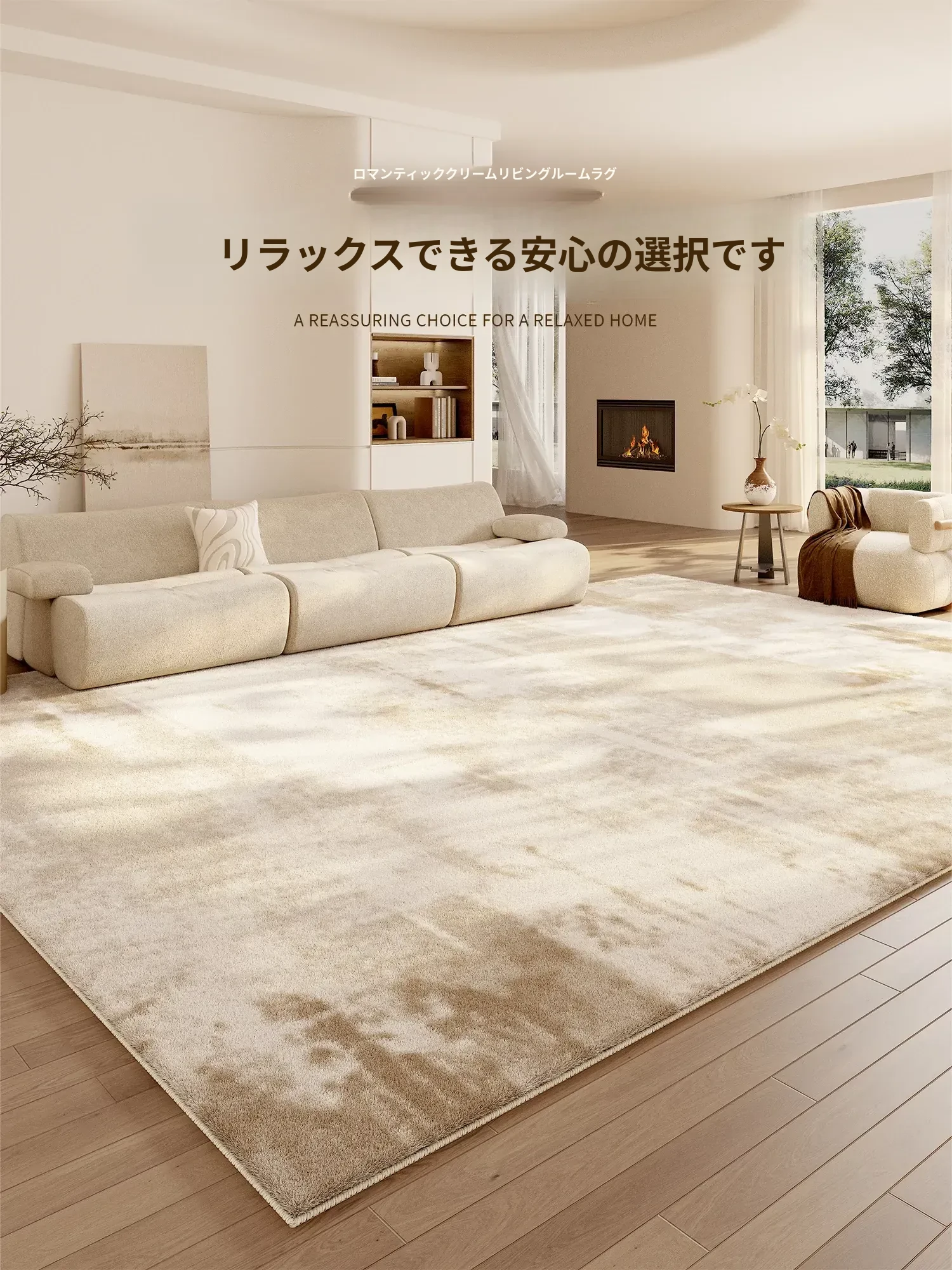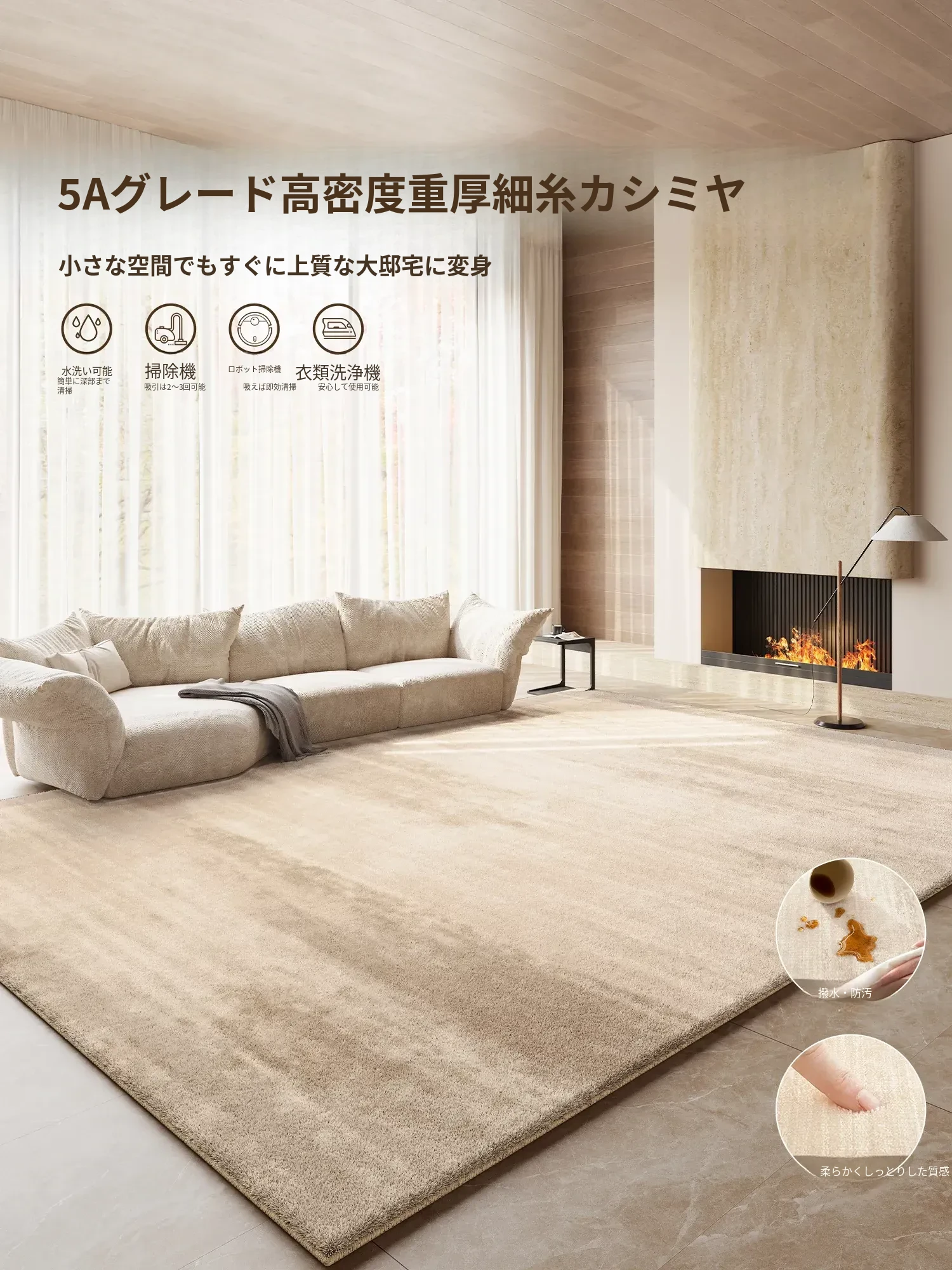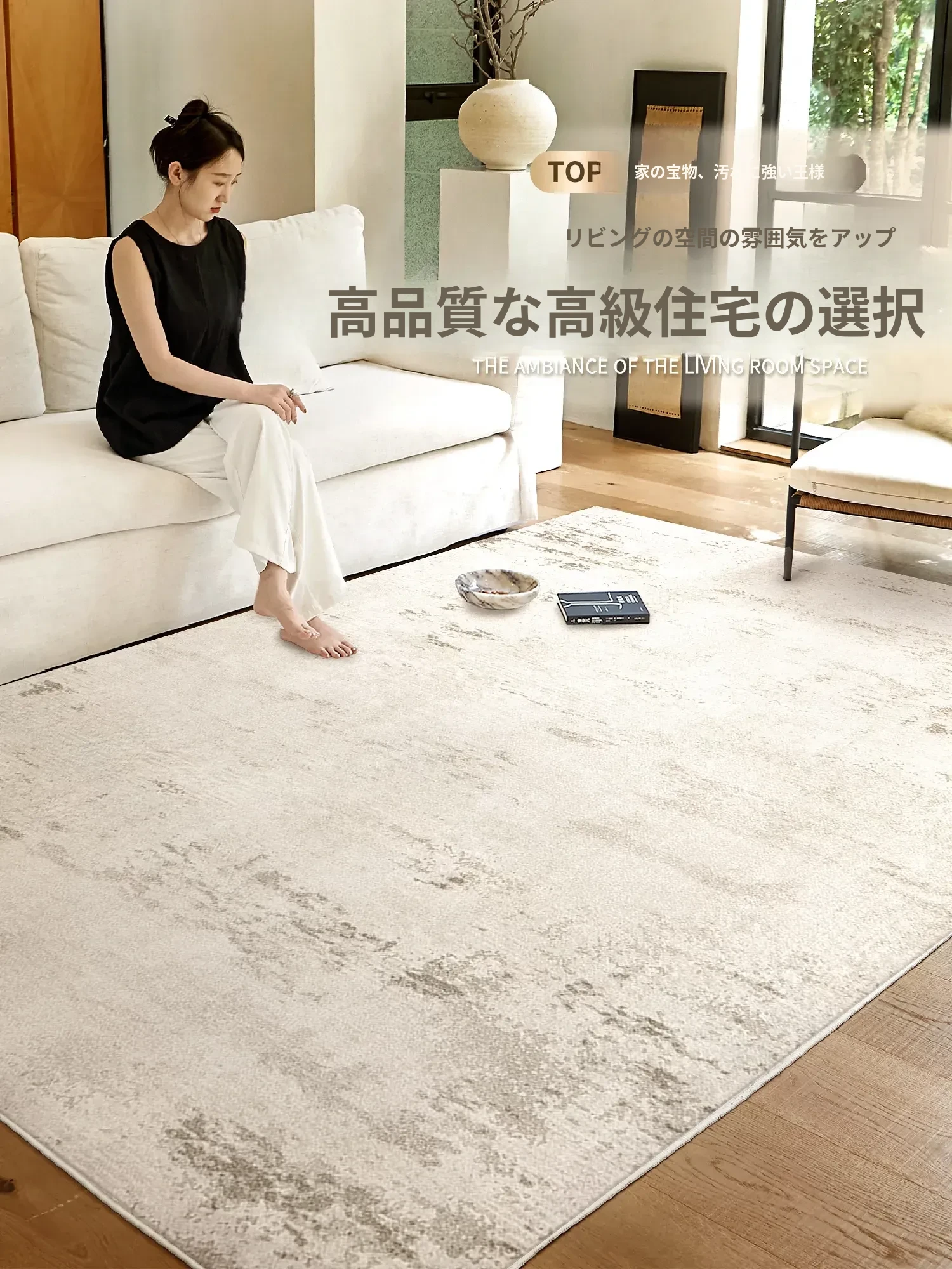 2025年新作!高級感あふれるクリームソファにぴったりのリビング用カーペット。厚手でお手入れ簡単、汚れに強く防水効果も抜群。心地よい空間を演出します!