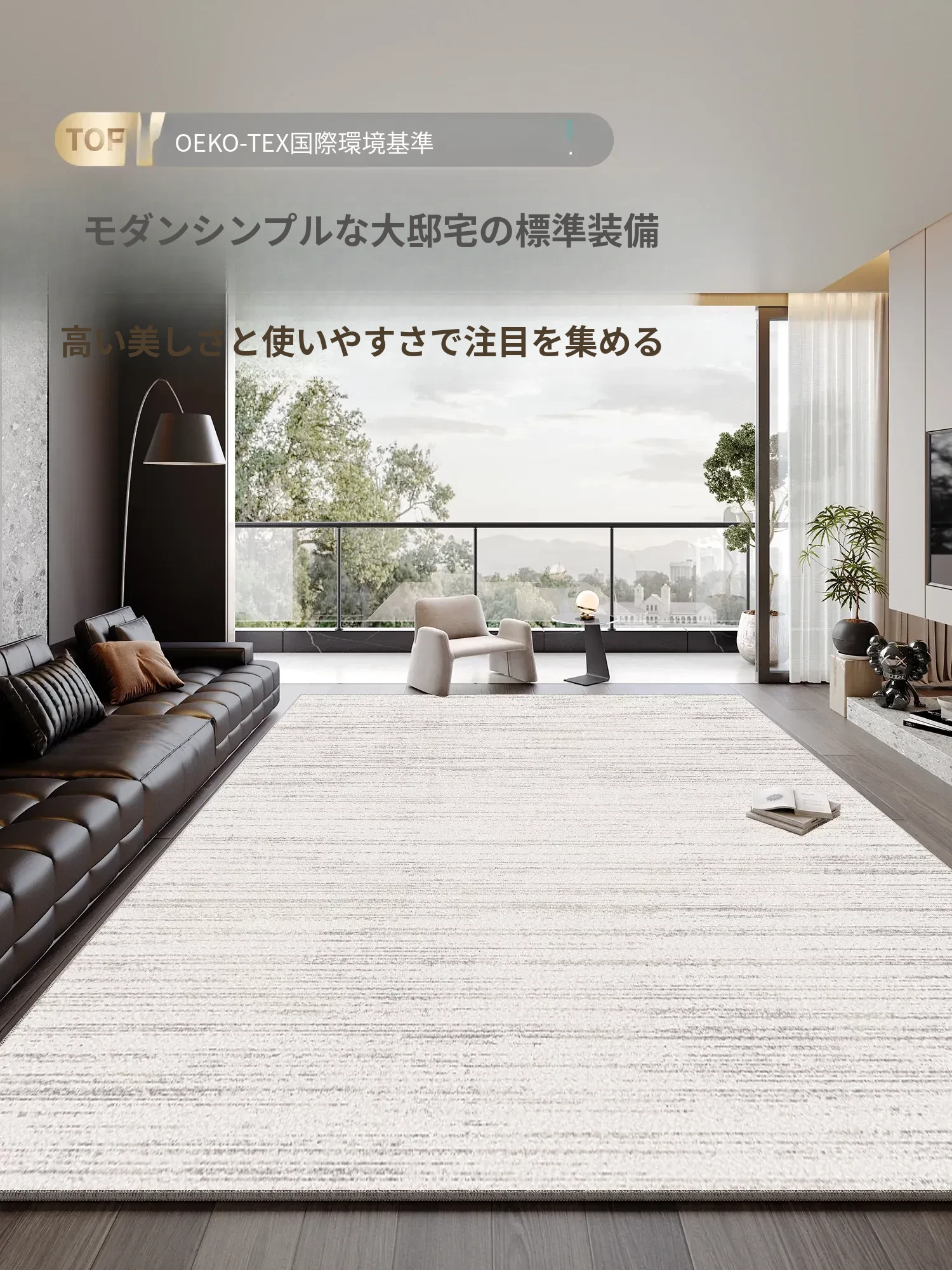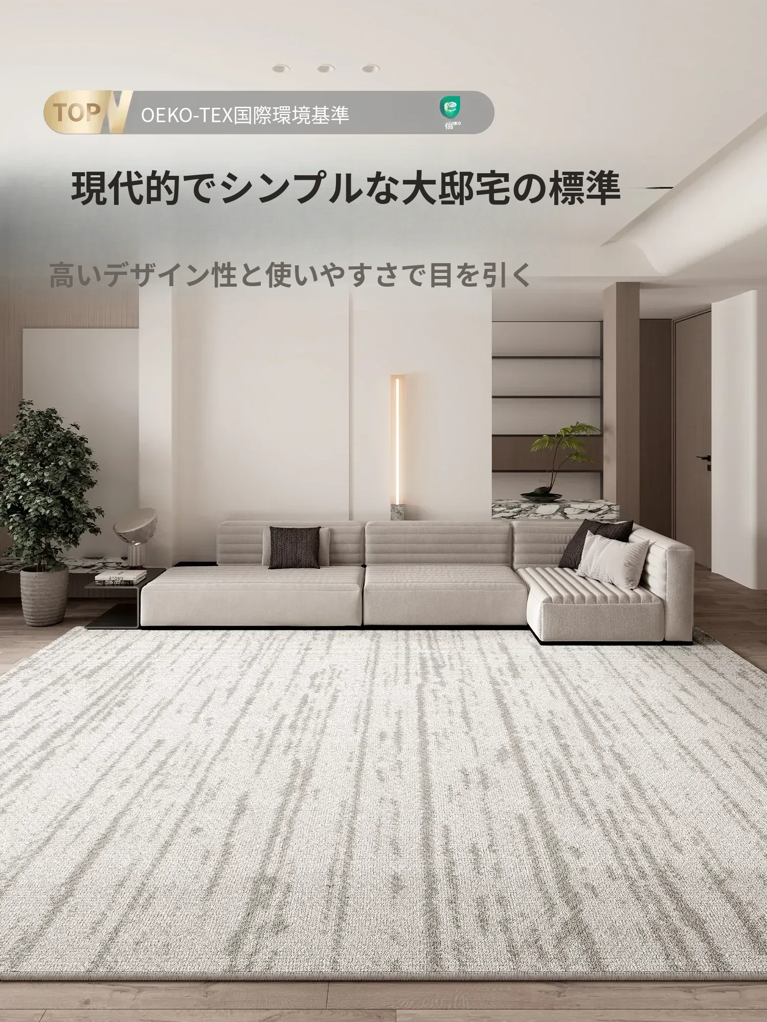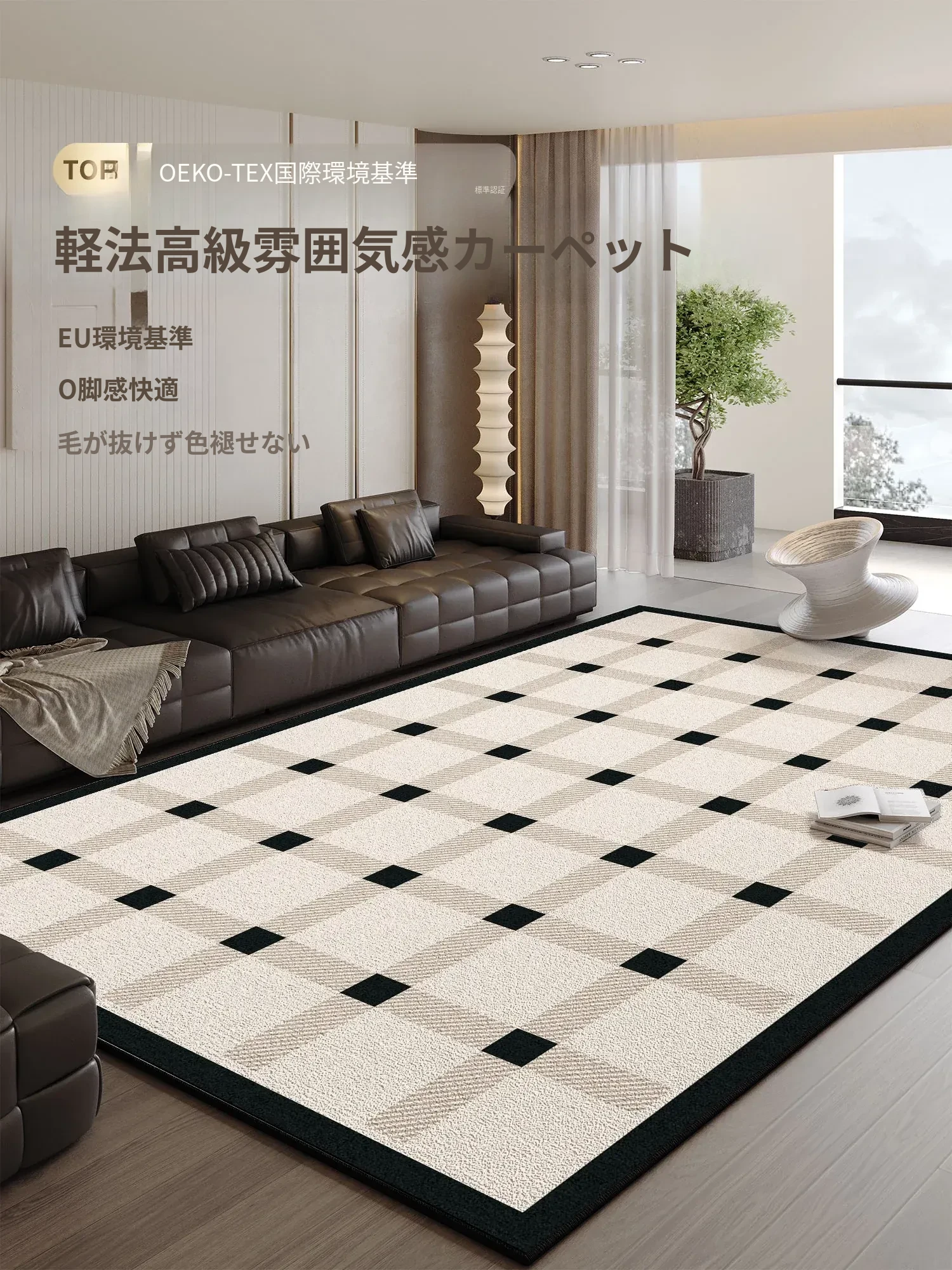 モダンな軽奢スタイルの防水・防汚カーペット|お手入れ簡単!リビングやテーブルに最適な滑り止め・耐摩耗設計、安心してお使い頂けます。