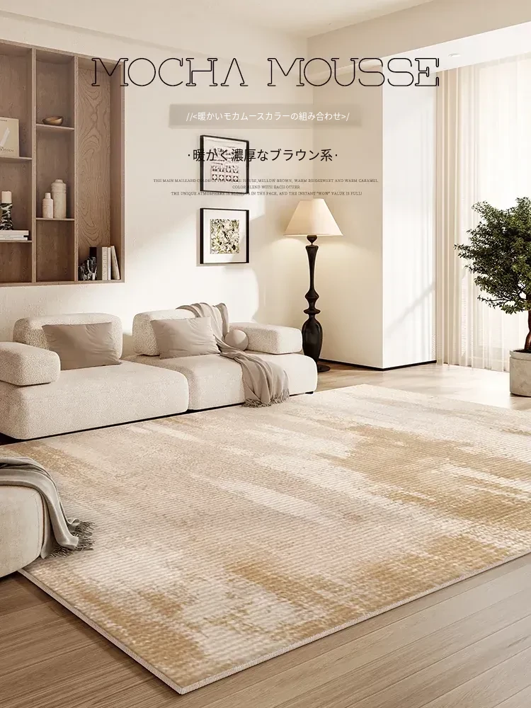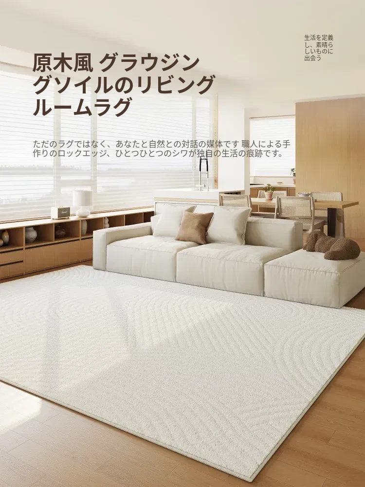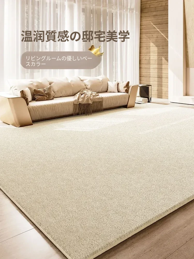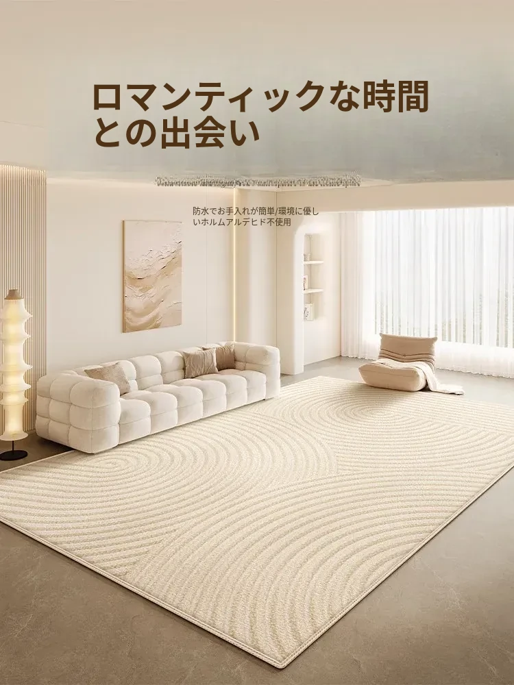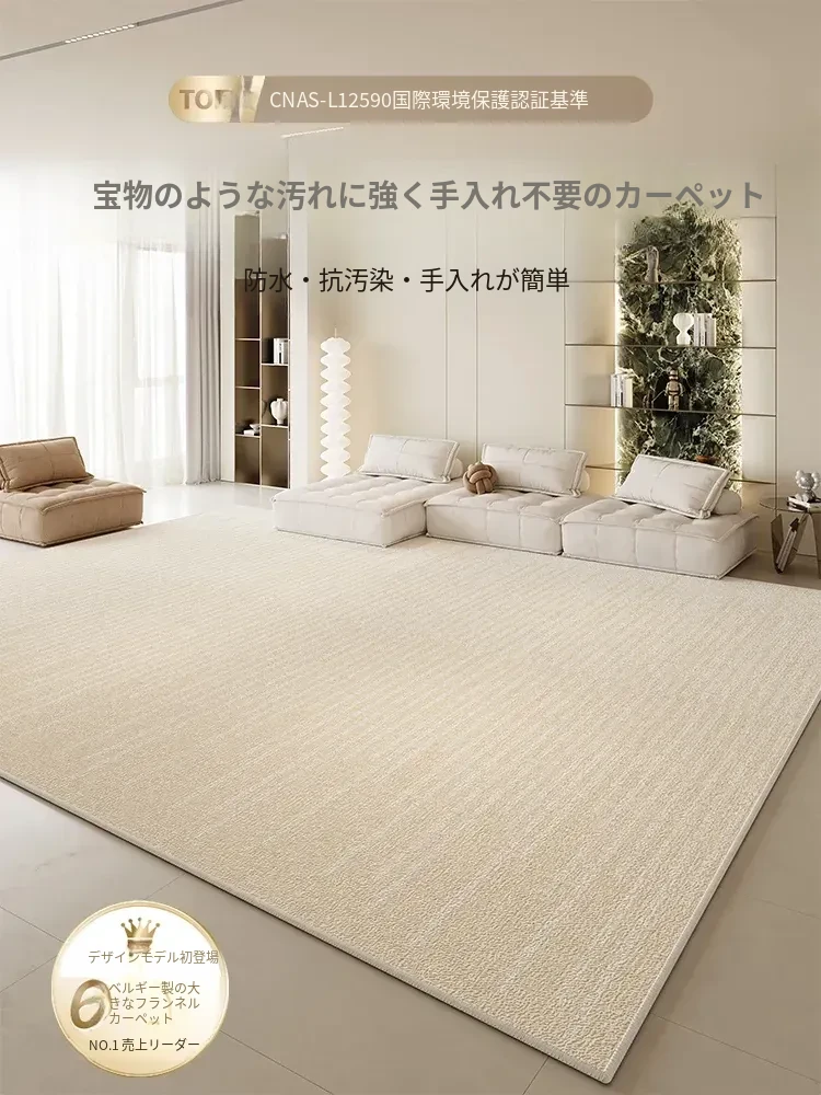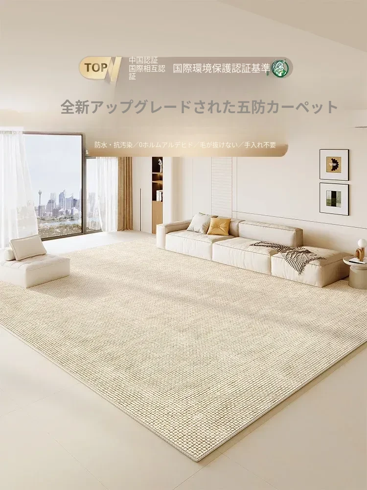 リビングルーム用防水・防汚カーペット 2025年新作!クリーム風デザインでお手入れ簡単、寝室やテーブルにもぴったりな高級感あふれるシリカ繊維使用。快適な空間を演出します!