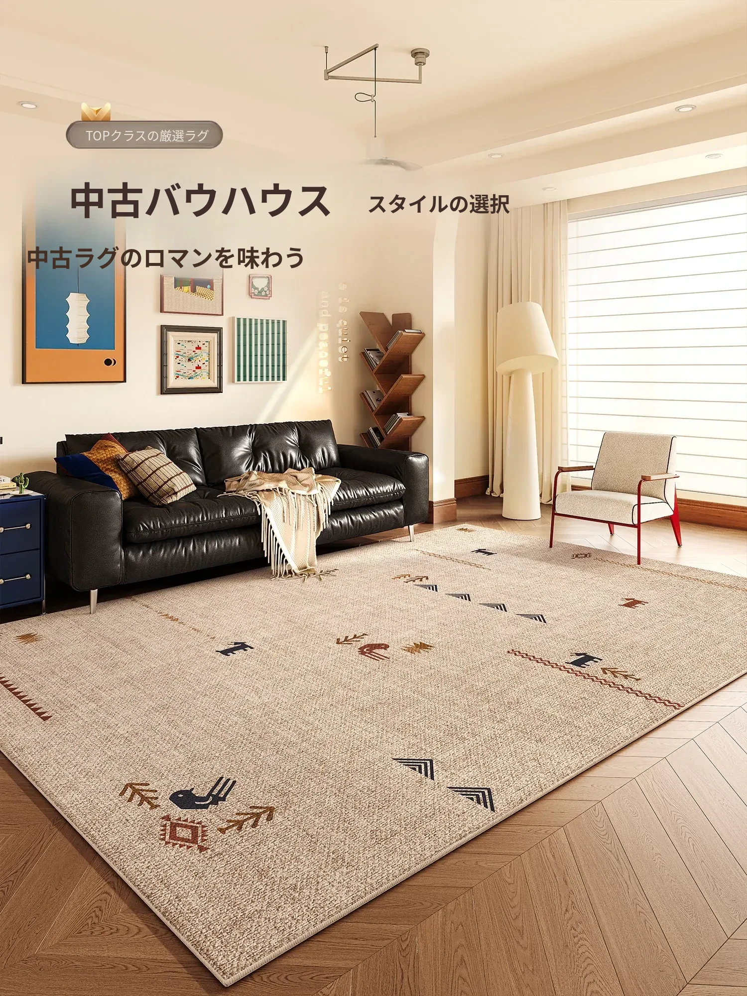 高級軽奢・お手入れ不要な防水・防汚リビングカーペット 2025年新作・ノンストレスのミッドセンチュリー風デザイン