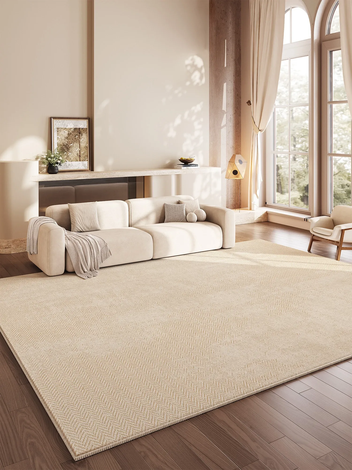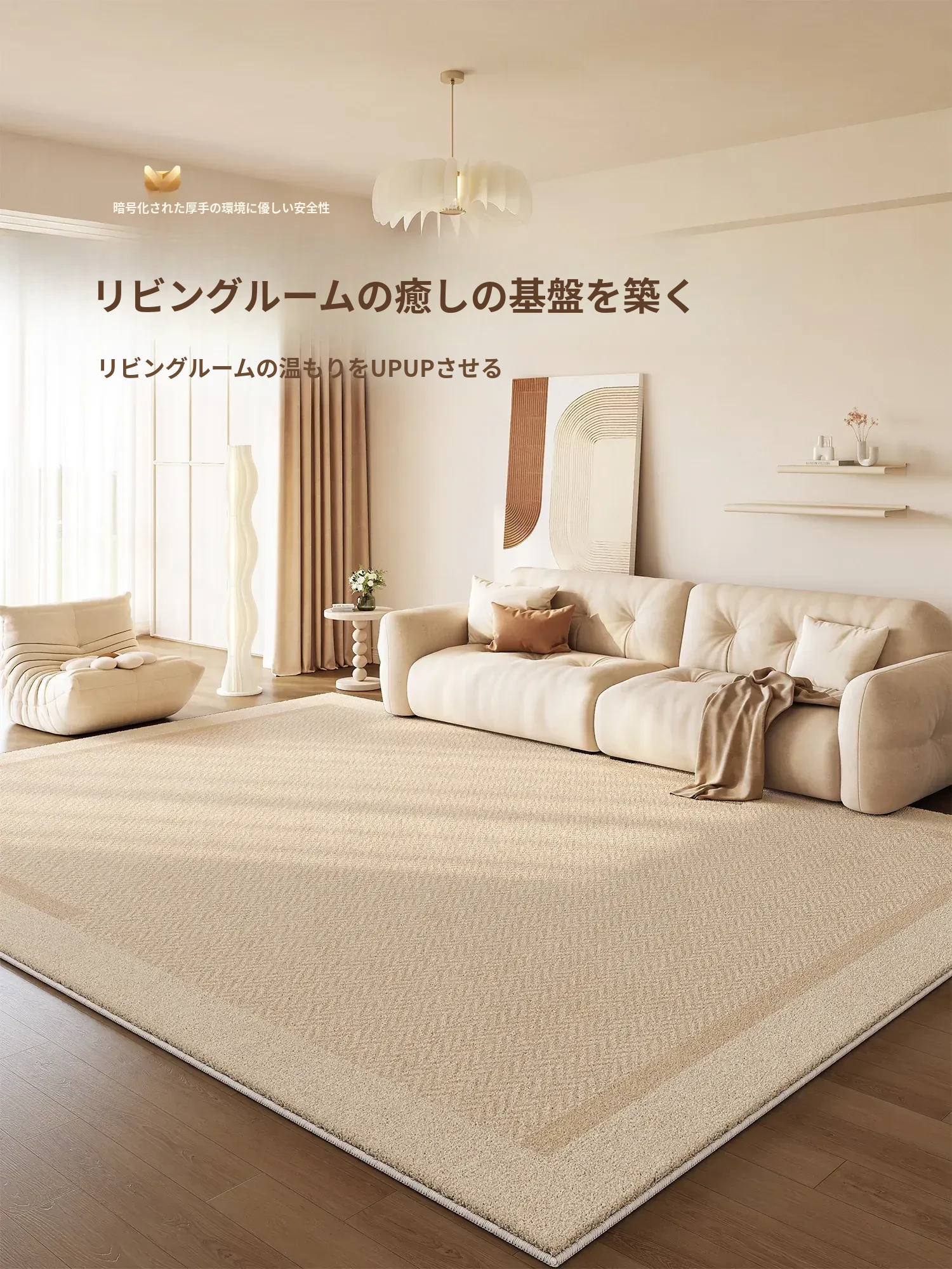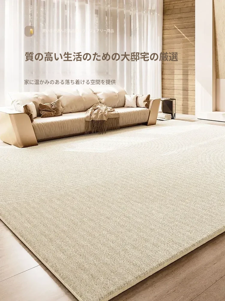 高級感漂う淡いクリーム色のリビング用カーペット2025年新作!洗わなくても大丈夫、簡単に拭けるソファやテーブル用マット。お部屋を一層素敵に演出します!