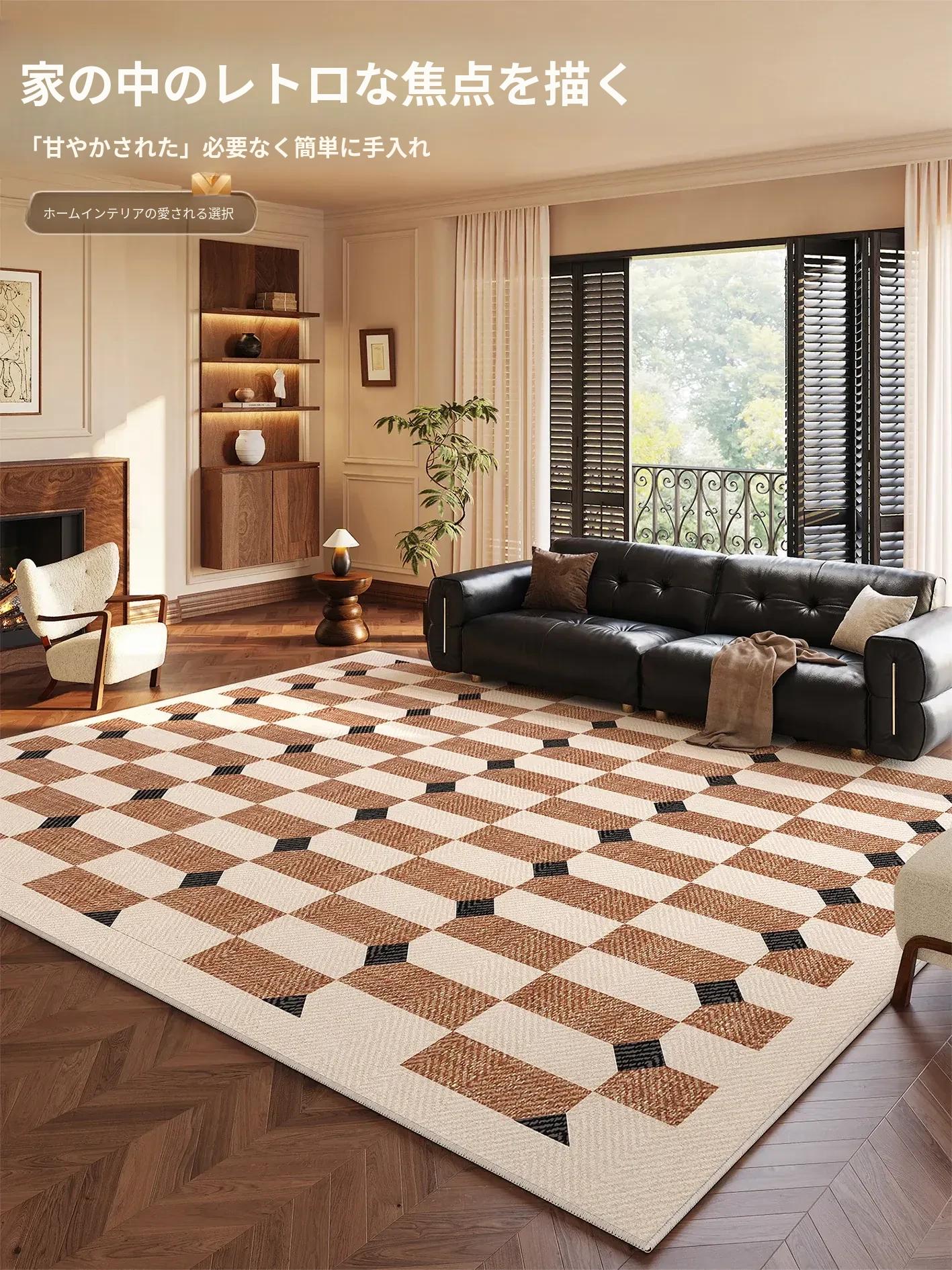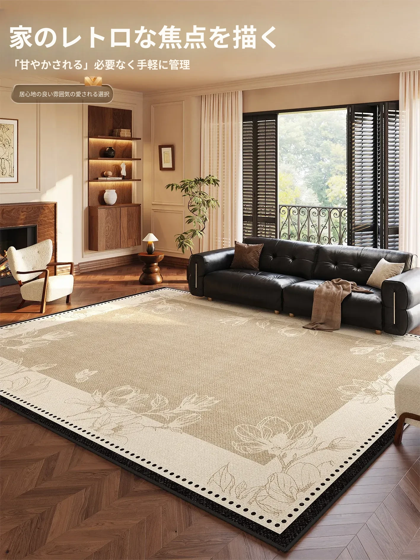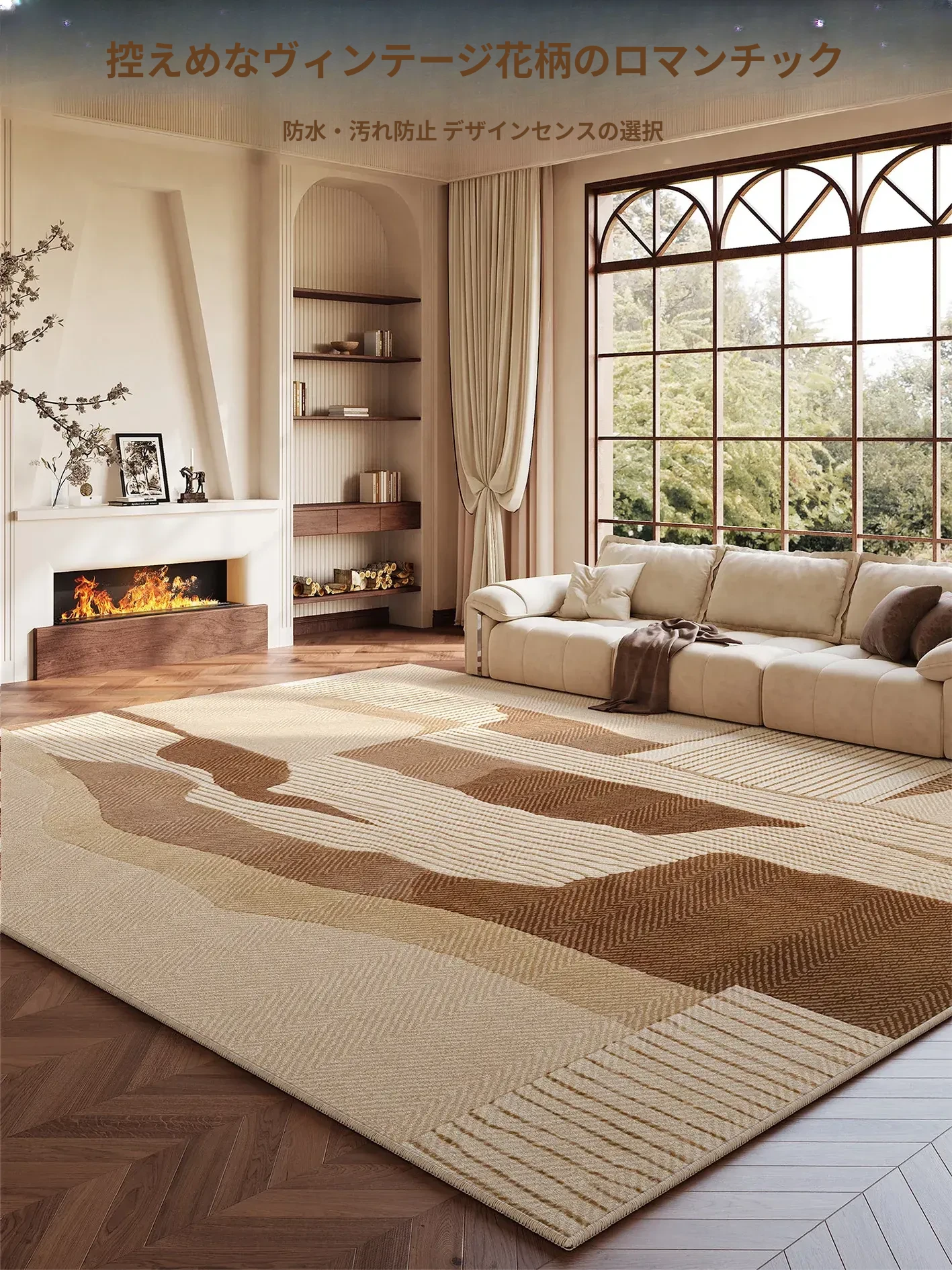 2025年新作!客厅用防水・防汚の手間いらずラグマット - 茶の間にぴったりな侘寂風デザイン、滑り止め付きで安心!快適な空間を演出します!