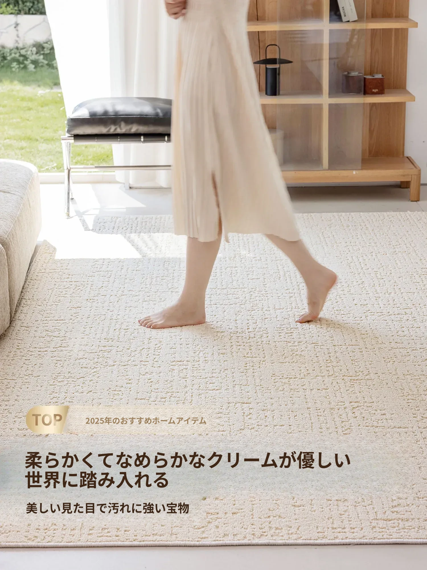 2025年新作!お手入れ簡単な防水・防汚カーペット。リビングにぴったりなクリーミーな風合いで、高級感あふれる滑り止めデザイン。清潔感を保ちながら、スタイリッシュな空間を演出します!